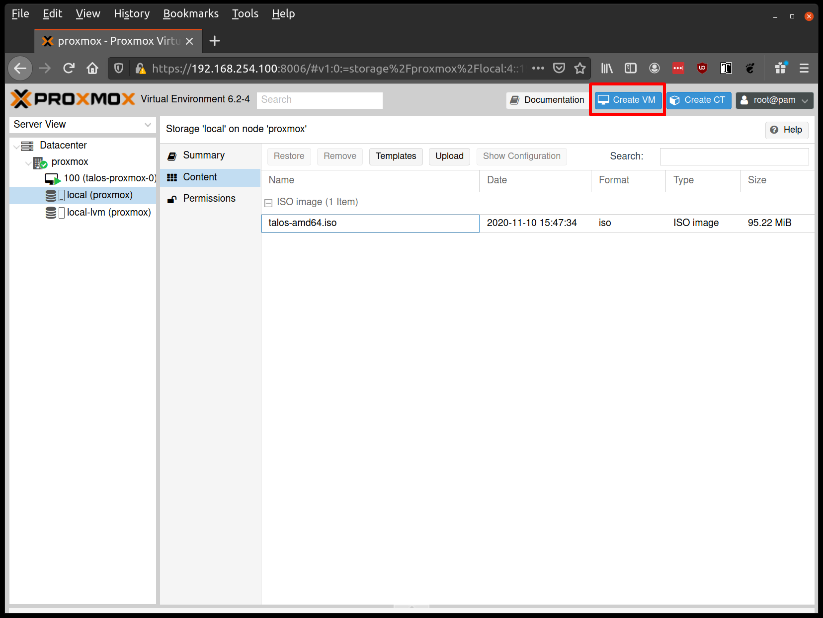 It is assumed that you have already installed Proxmox onto the server you wish to create Talos VMs on. Visit the Proxmox downloads page if necessary.