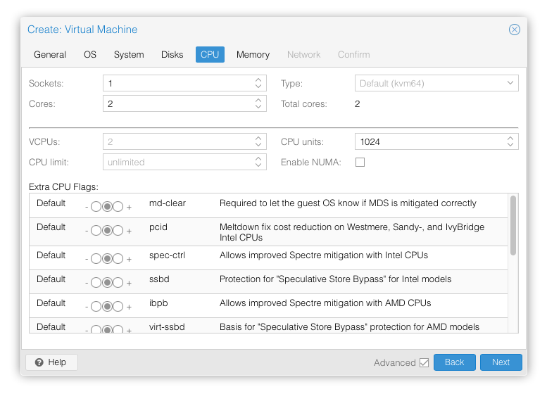 Finish creating the VM by clicking through the “Confirm” tab and then “Finish”.